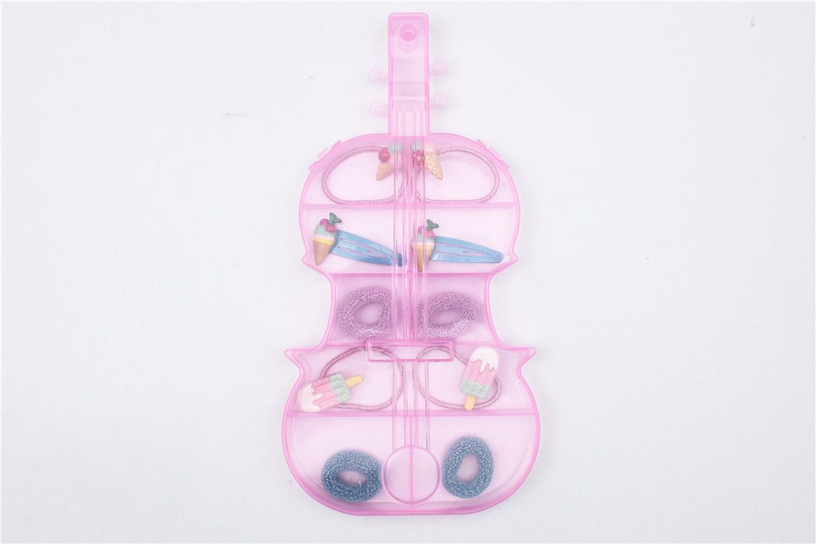 Product Pattern-Violin shaped gift box Girls Hair Accessories, Hair Elastic band, Snap clips, Loop.