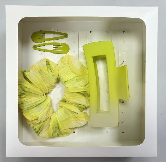Product Pattern: Paper gift box for Ladies Claw Clip. Snap clips and Scrunchie/set