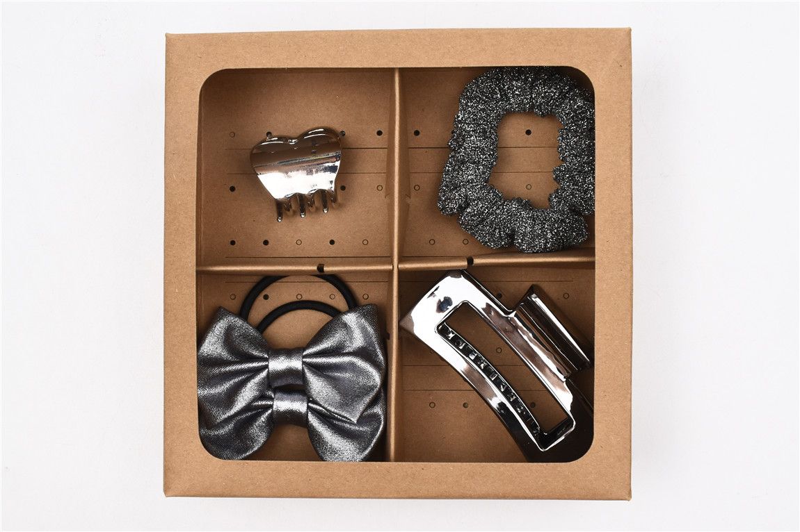 Product Pattern: Paper Gift box for ladies Hair Elastic Band with bow, metal clip, claw clip and scrunchie set