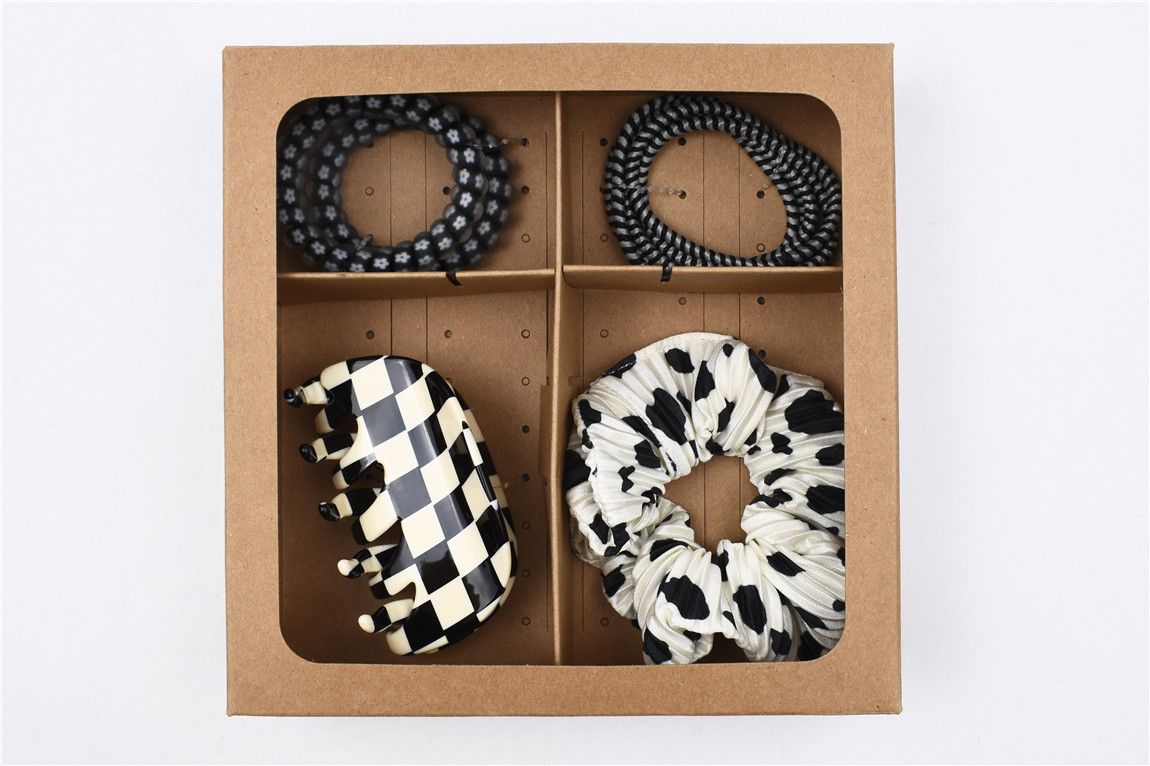Product Pattern: Paper box gift pack for ladies hair elastic band, claw clips and scrunchie set